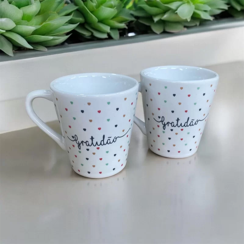 Xícara Cônica 120ml Branca Decorada Gratidão (Faixa)