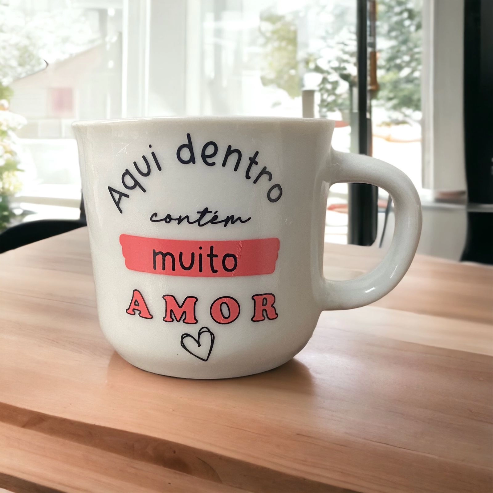 Xícara/Caneca Ágata 200ml Branca Decorada (Aqui Dentro Contém Muito Amor)