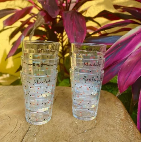 Copo Americano 190ml Decorado Gratidão Amor Felicidade (Faixa)