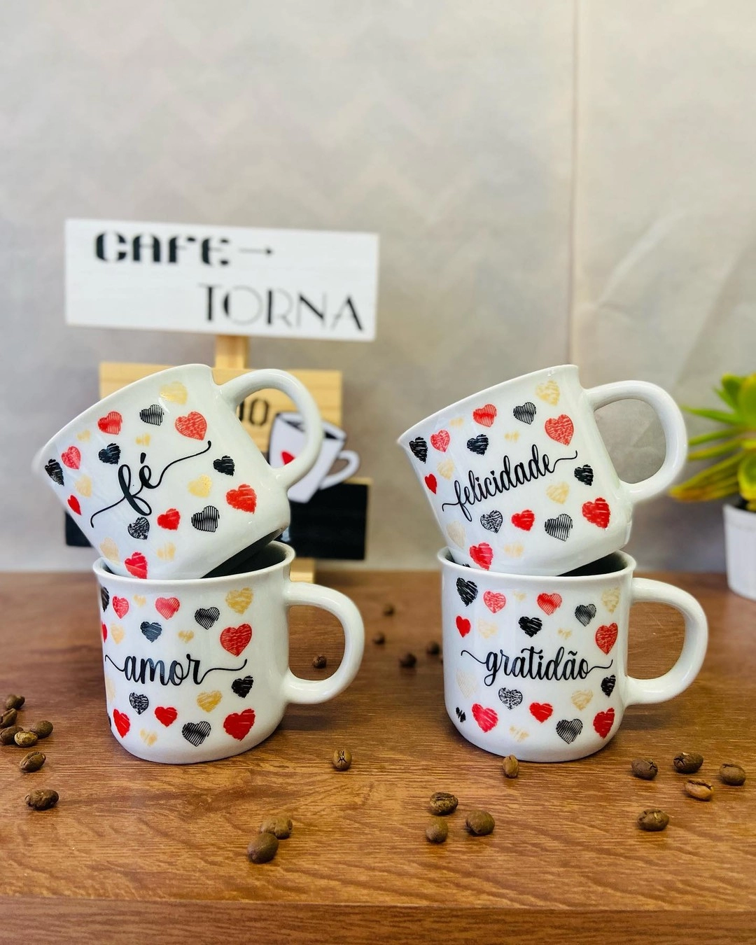 Xícara/Caneca Tipo Ágata 200ml Branca Decorada (FÉ/FAMILIA)