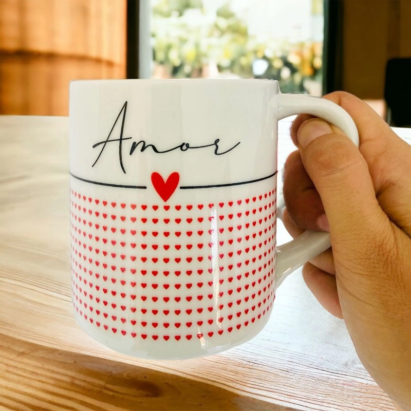 Caneca Reta 300ml Branca Decorada Amor/Gratidão
