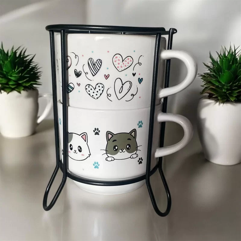 Kit Xícara com 2 Empilhável 200ml Branca Pet's