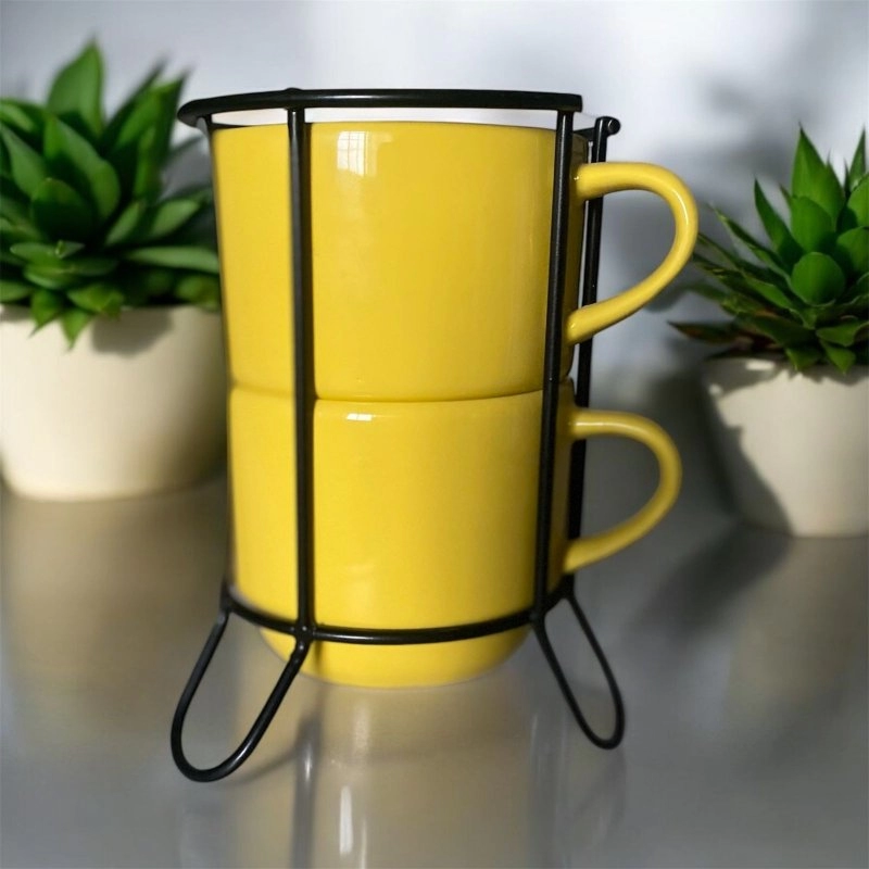 Kit Xícara com 2 Empilhável 200ml Amarela Lisa