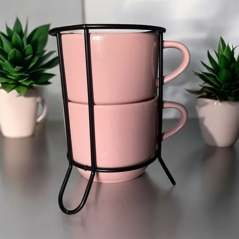 Kit Xícara com 2 Empilhável 200ml - Rosa Lisa