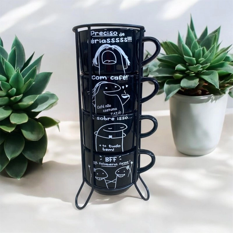 Kit Xícara Empilhável 200ml Preta - Flork