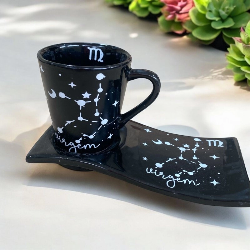 Voltar para a página inicial   >   Signos   >   Kit Xicara 120ml + Pires Preta - Signo Virgem