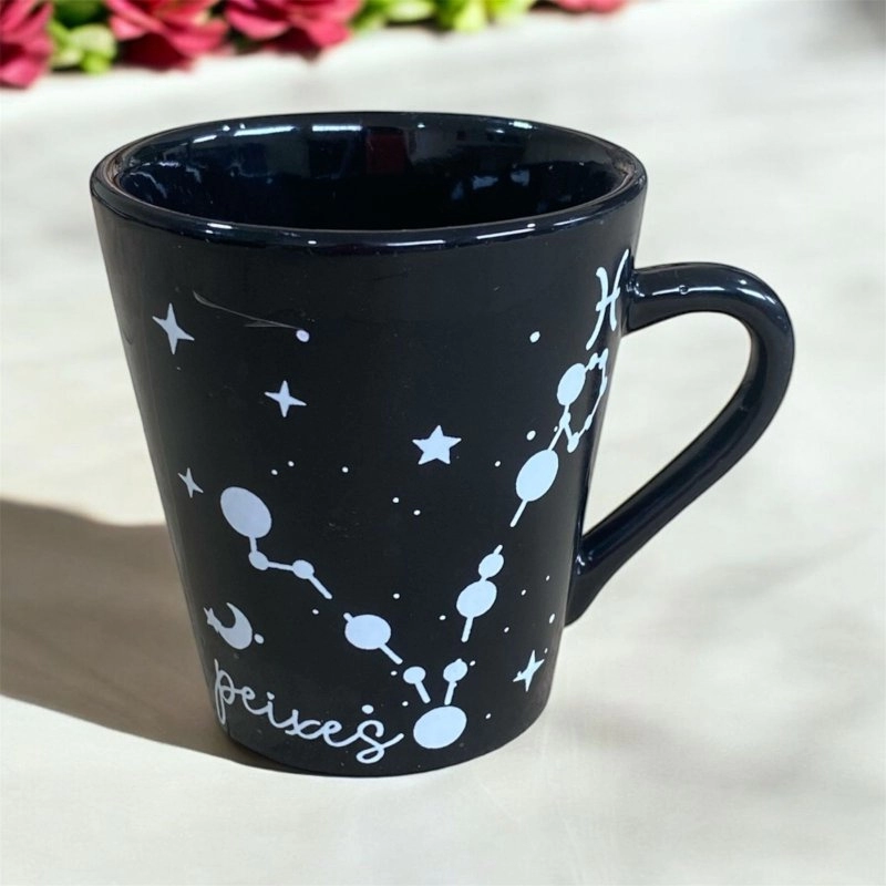 Voltar para a página inicial   >   Signos   >   Xícara Cônica 120ml Preta - Signo Peixes