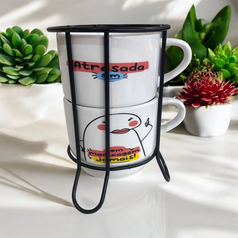 Kit Xícara com 2 Empilhável Flork 200ml Cor Branca - atrada sim/ sem maquiagem jamais