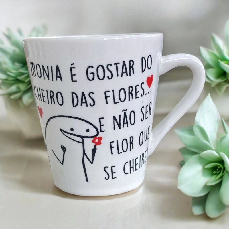 Xícara Cônica 120ml Branca Namorados - Ironia é gostar