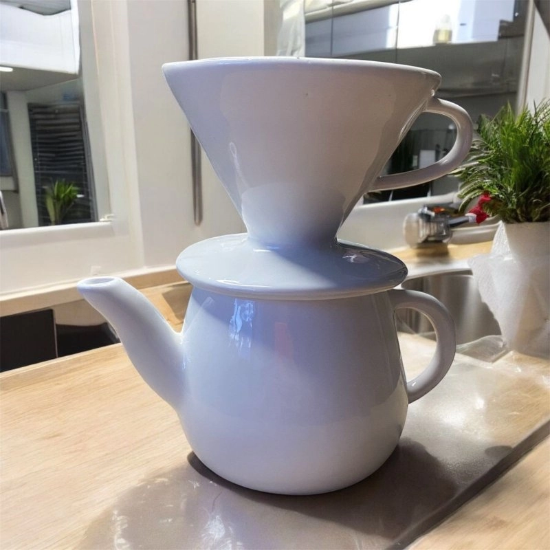 Kit coador de porcelana +Bule 500 ml branco liso