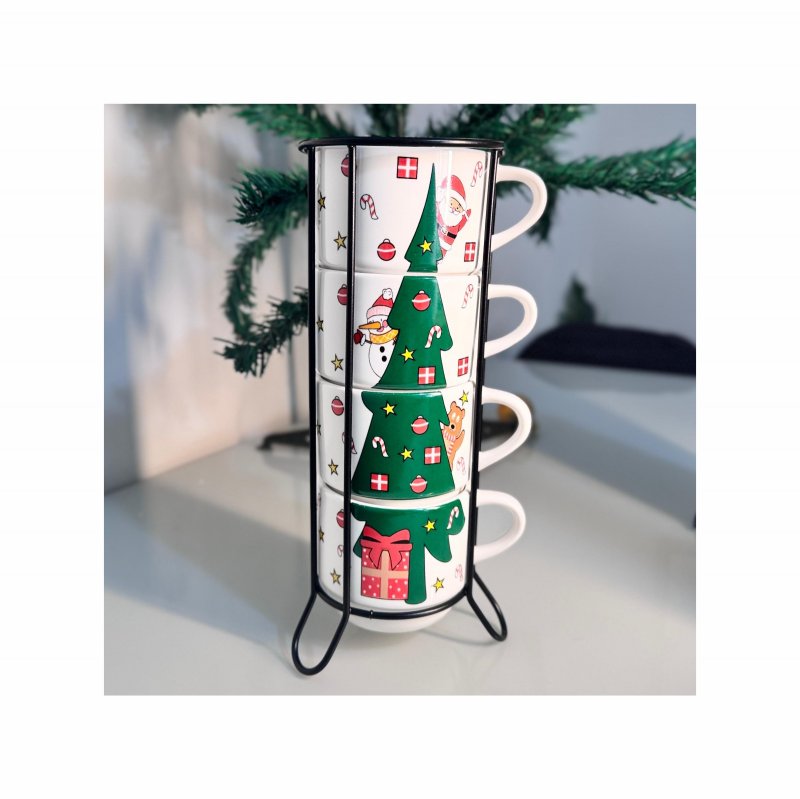 Kit Xícara Empilhável 200 ml Branca Árvore de Natal