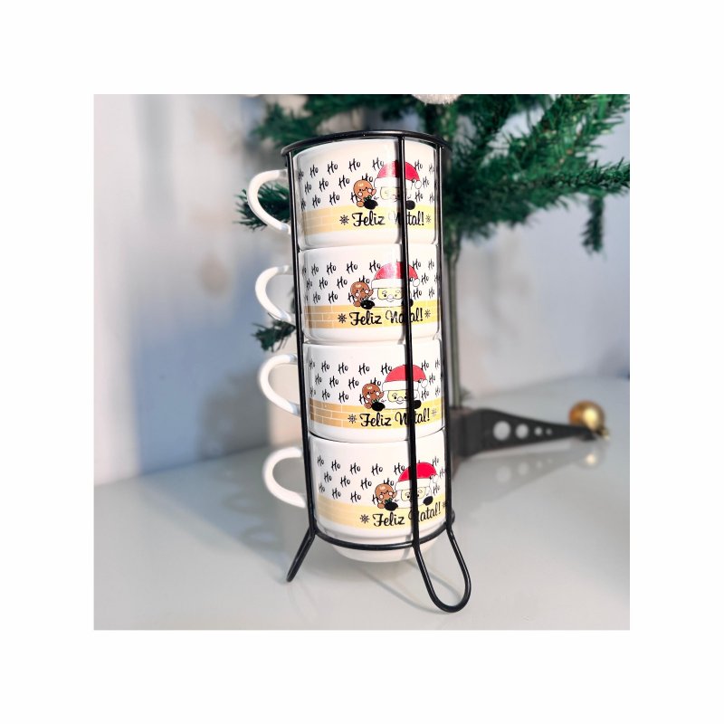 Kit Xícara Empilhável 200 ml Branca Feliz natal