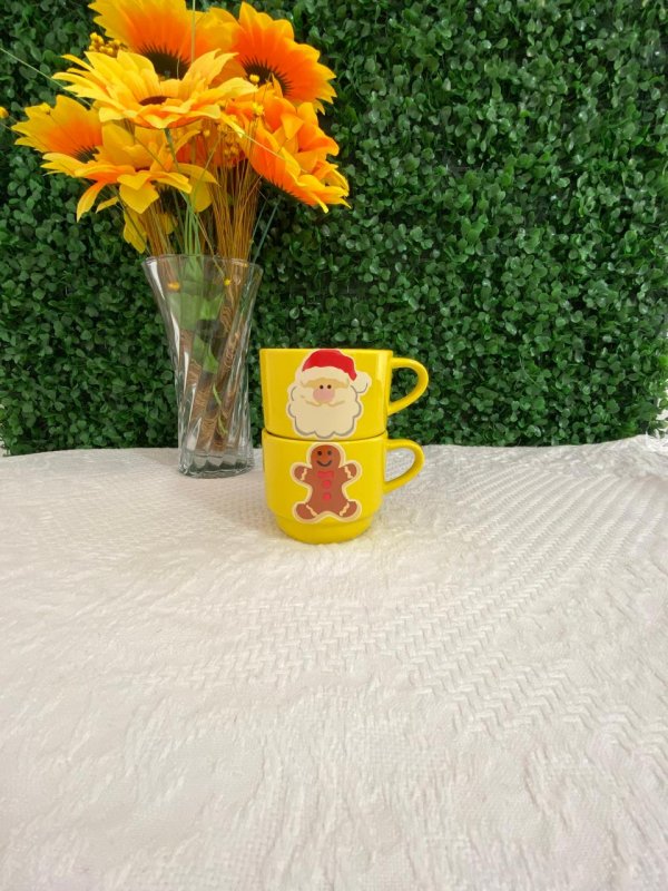Kit Xícara com 2 Empilhável 200ml Amarela - Noel /Biscoito
