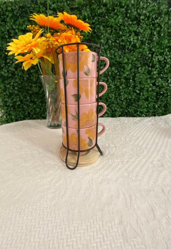 Kit Xícara Empilhável 200ml Rosa - Flor Amarela