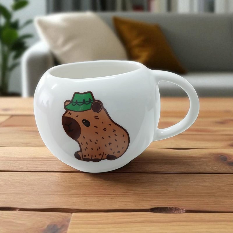 Caneca Porcelana 430ml Capivara Fofa - Chapeu