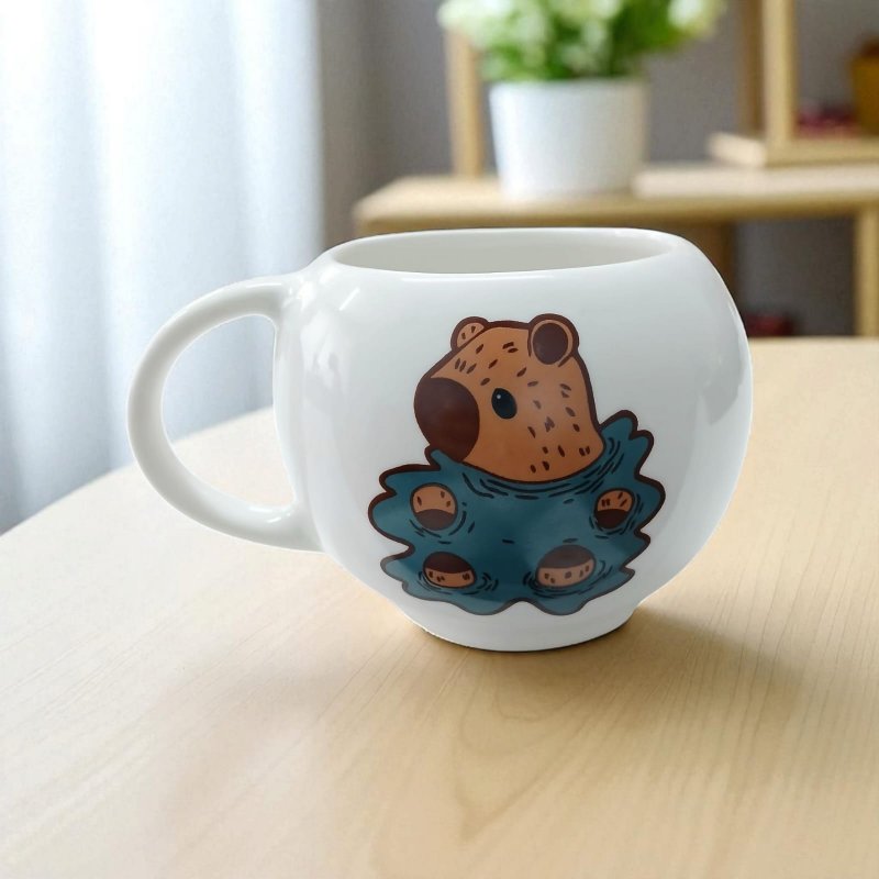 Caneca Porcelana 430ml Capivara Fofa - Piscina