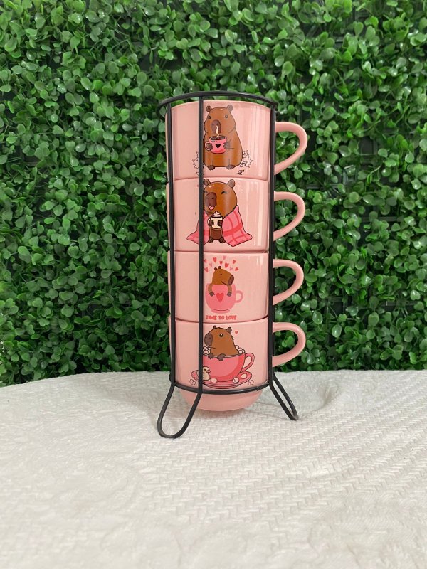 Kit Xícara Empilhável 200 ml Rosa - Capivara