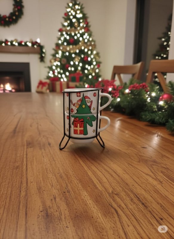 Kit Xícara com 2 Empilhável 200ml Branca Árvore Noel