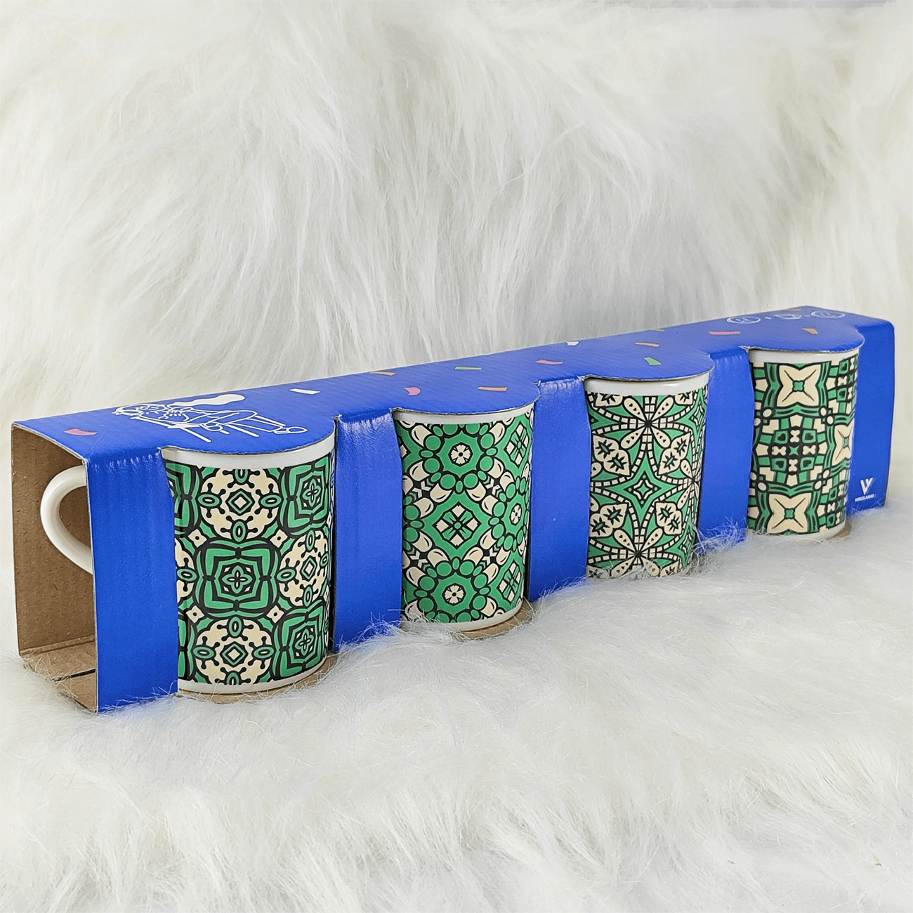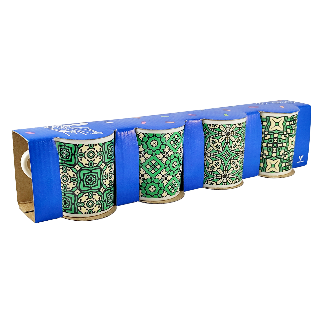 Voltar para a página inicial   >   Kit 4 xícaras caixa presente   >   Kit 4 Xicaras/Caneca de Porcelana Ladrilhos 120ml com Caixa de Presente