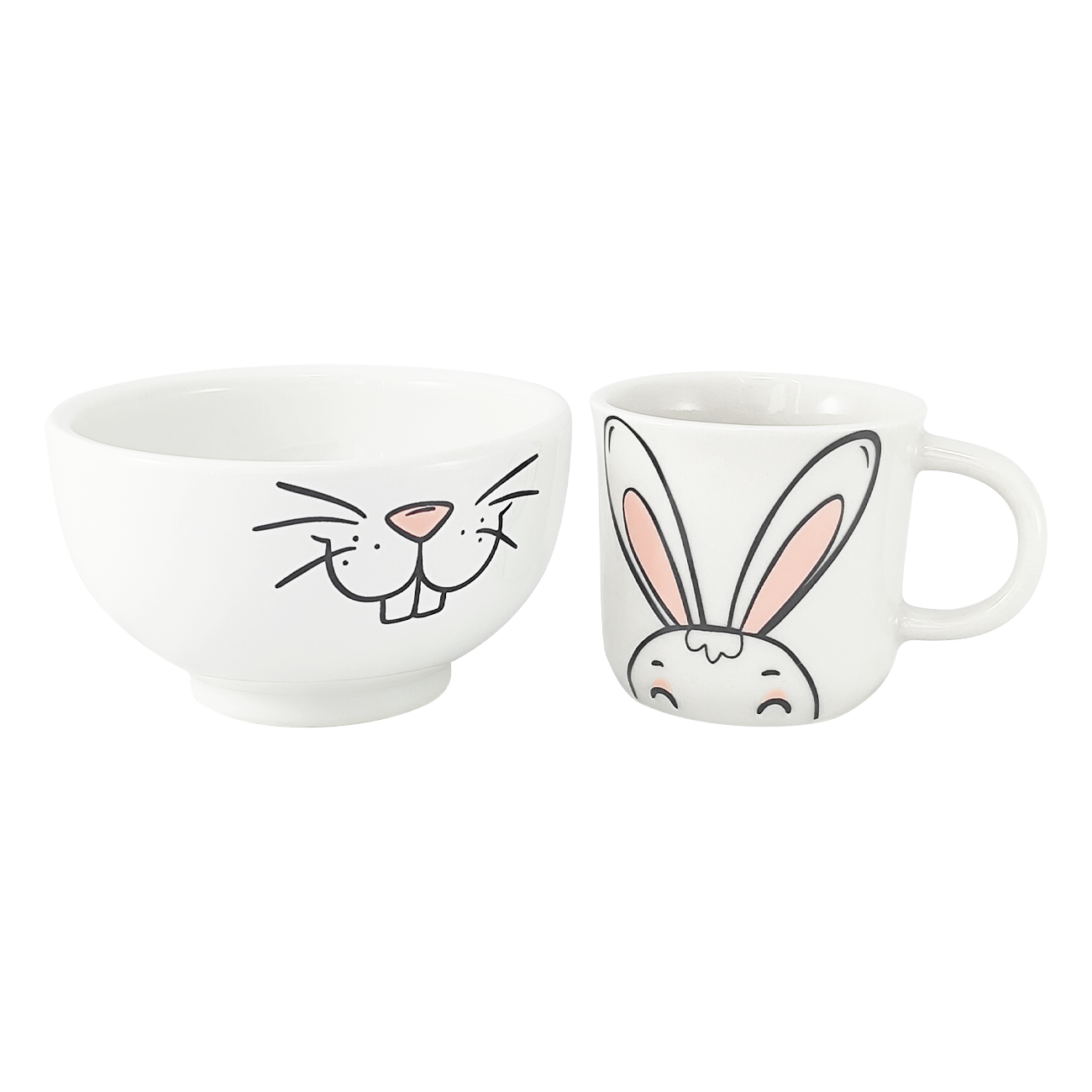 Kit Cumbuca Bowl Tigela Porcelana 450ml 1 Caneca Ágata de 200ml Feliz Páscoa