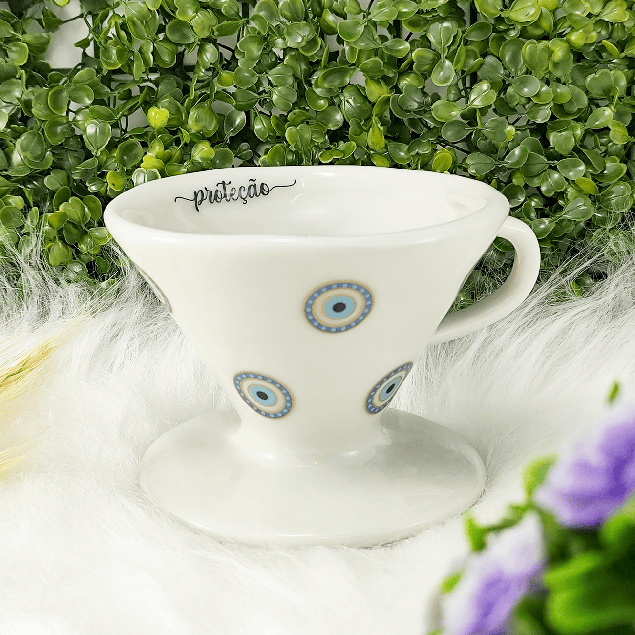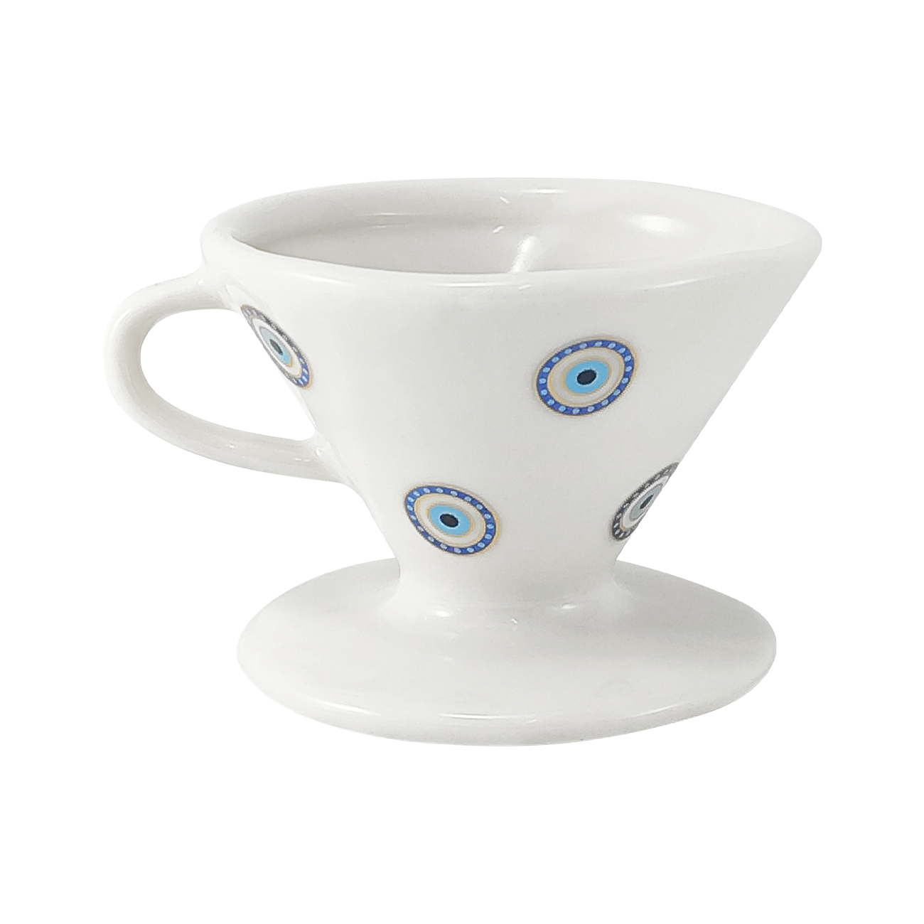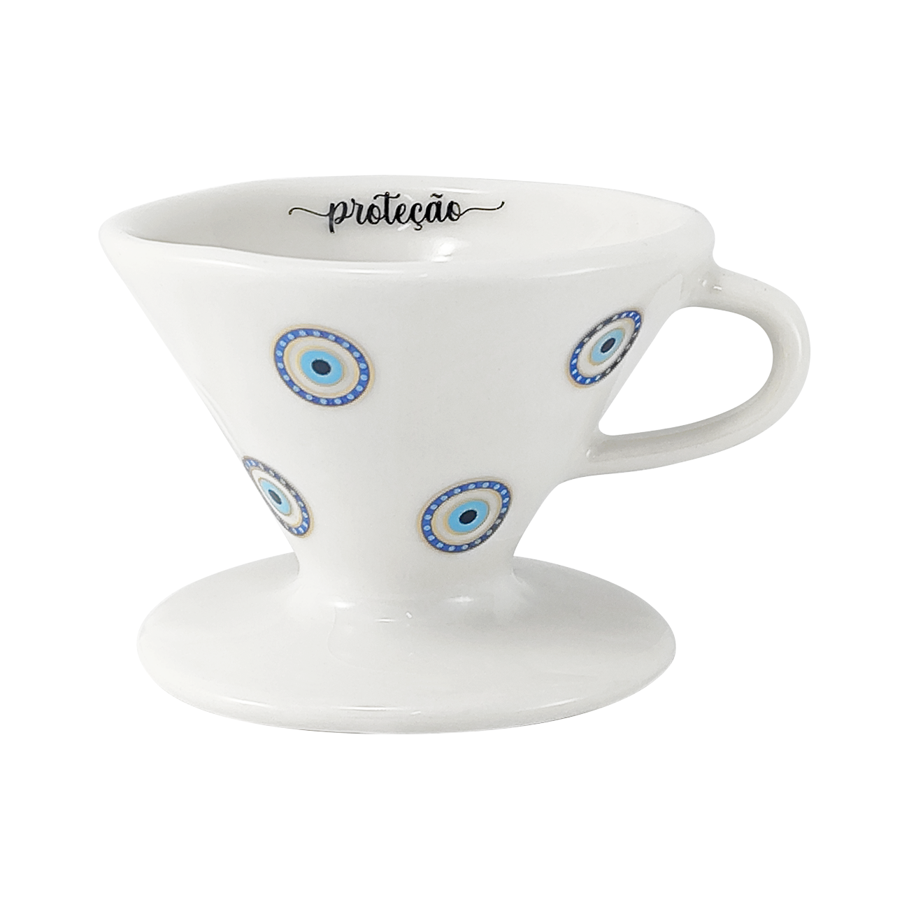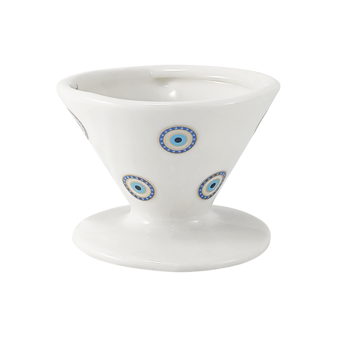 Filtro de Café Coador de Porcelana Branca Decorado - Olho Grego