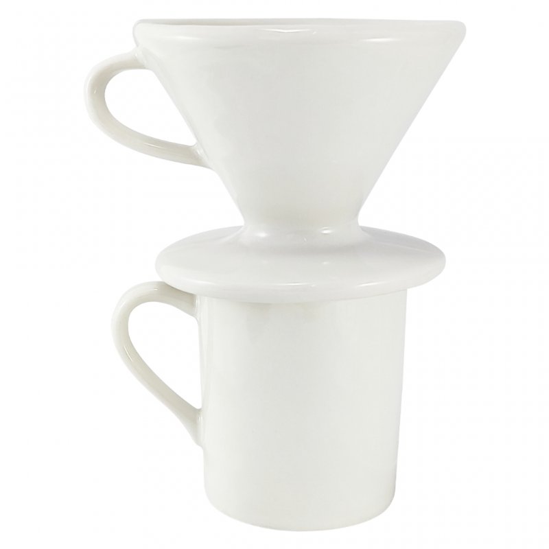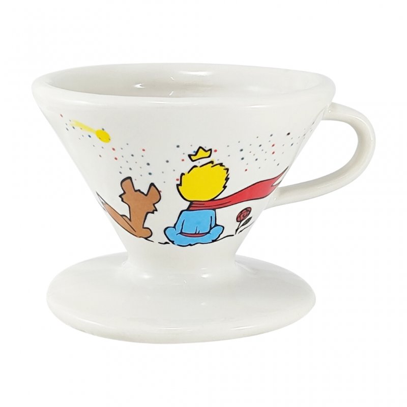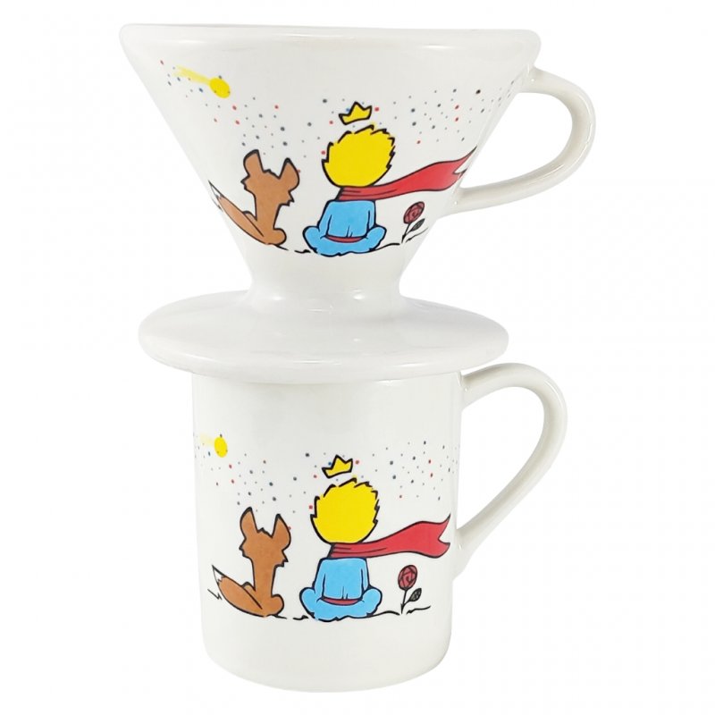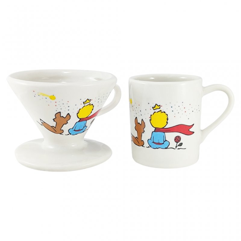 Kit Caneca 300 Ml Decorada - Coador De Porcelana Filtro Café Pequeno Príncipe