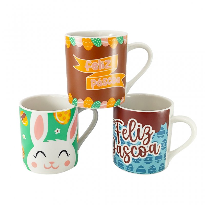 Caneca de Porcelana 300ml Coleção Páscoa Cores Sortidas– Criativa e Perfeita para Presentear