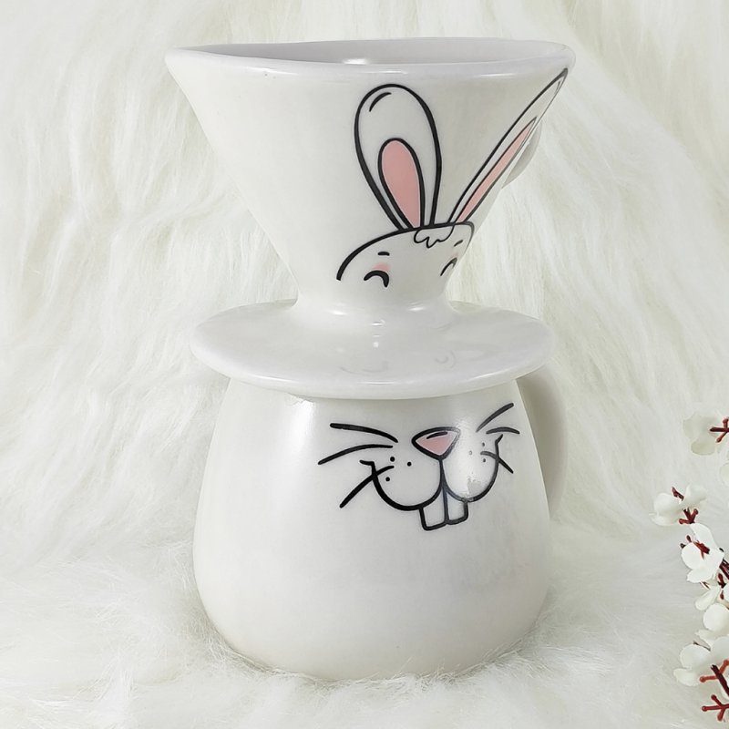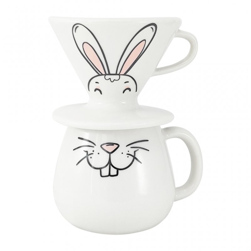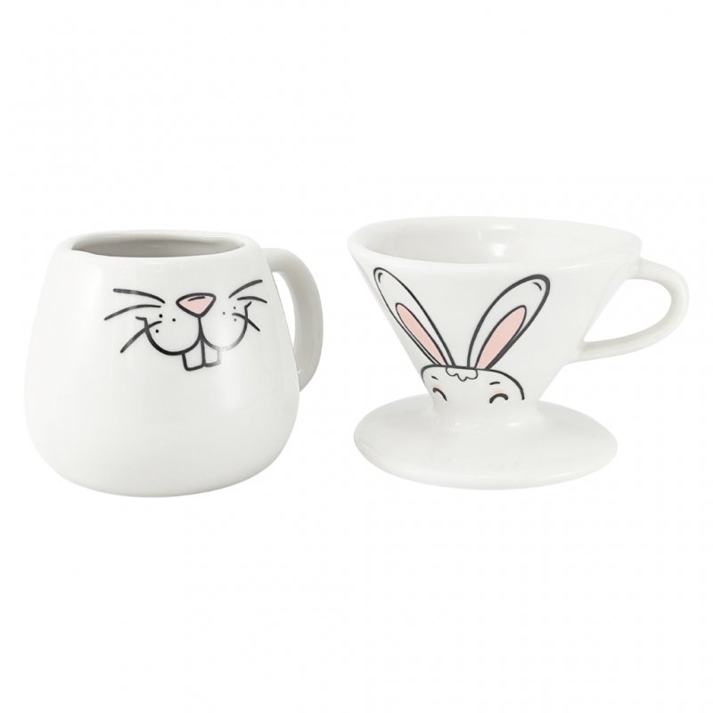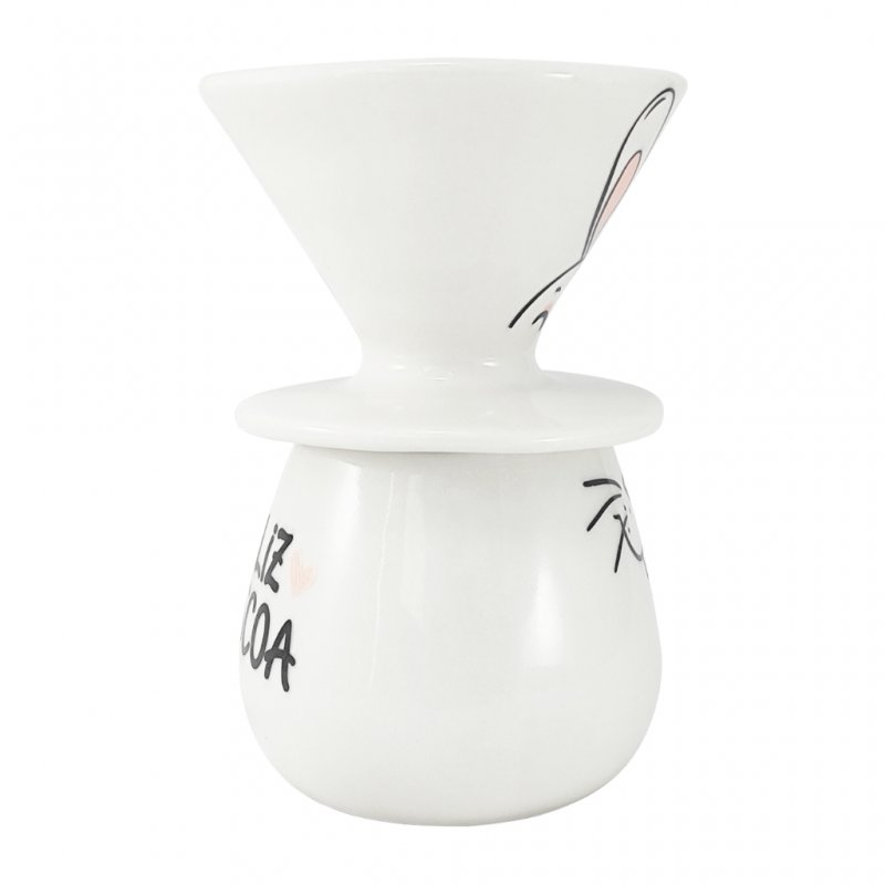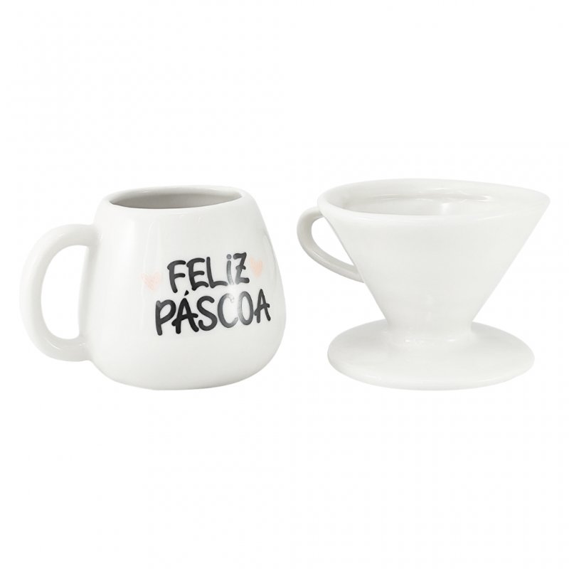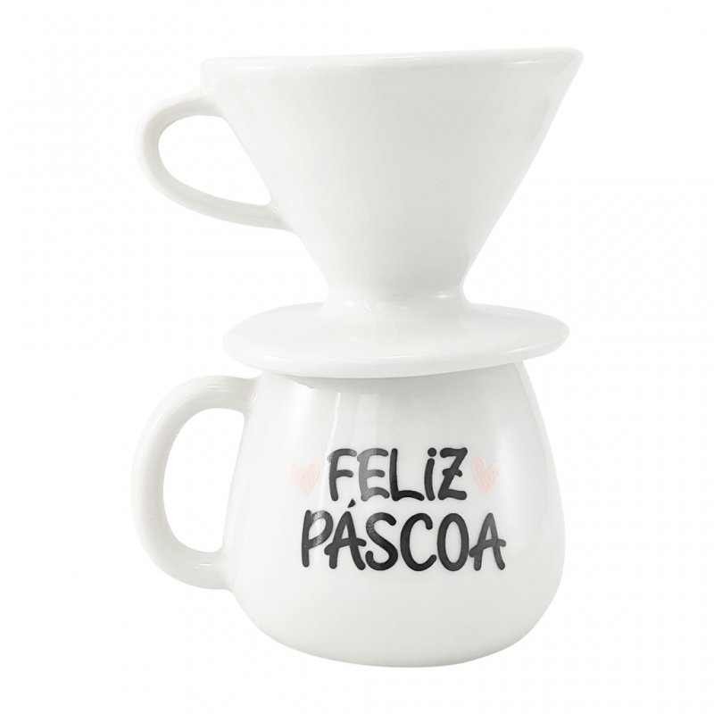 Kit Coador Filtro Porcelana Branco e Caneca 500ml Feliz Páscoa