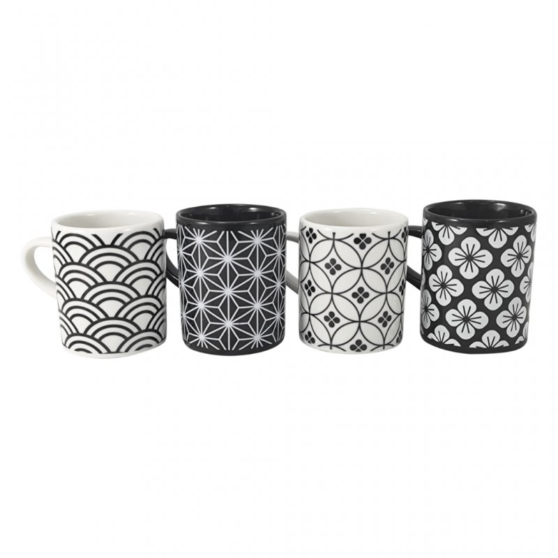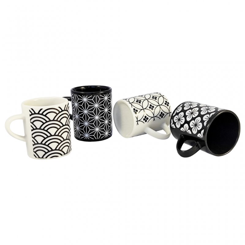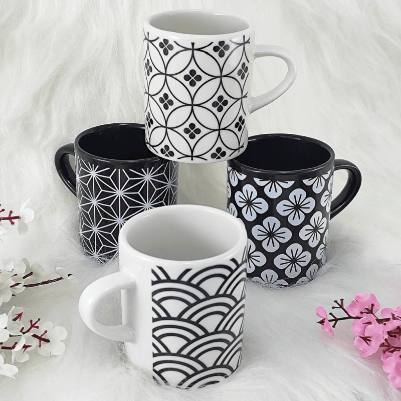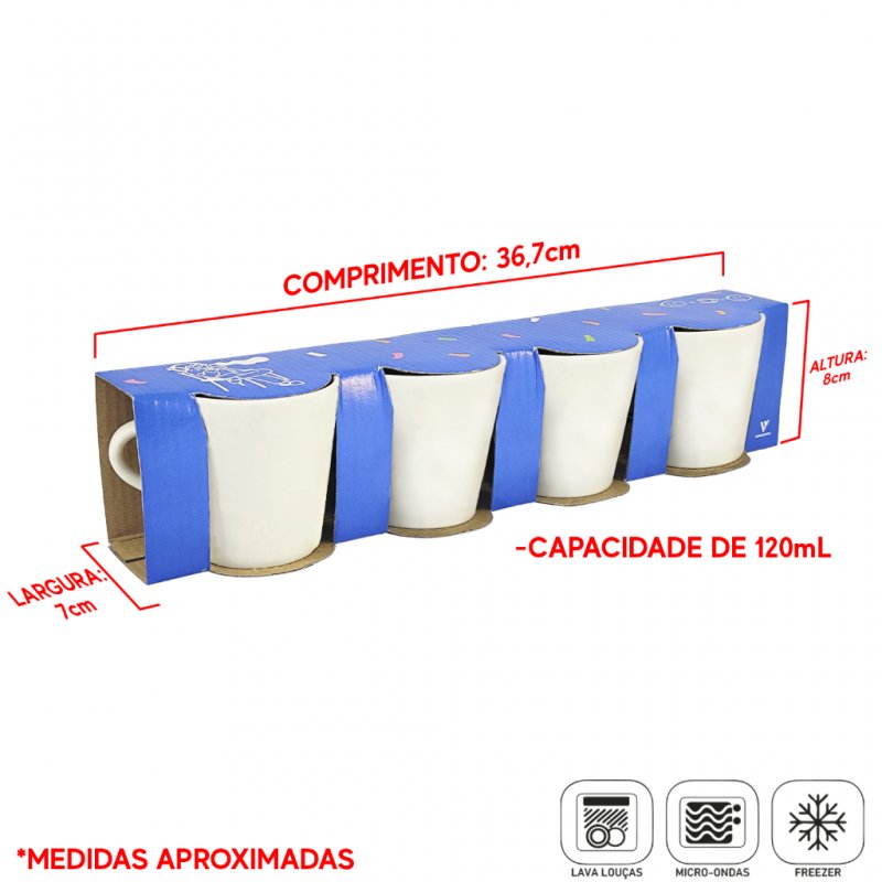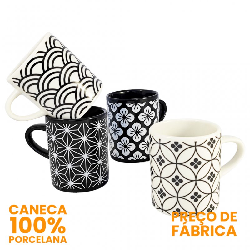 Kit 4 Xícaras/Canecas de Porcelana Sortidos 120ml com Caixa Presente