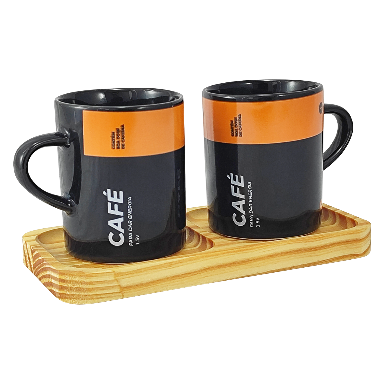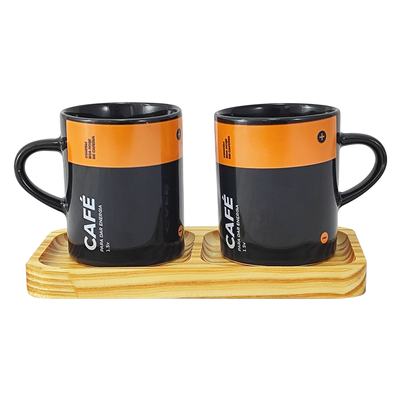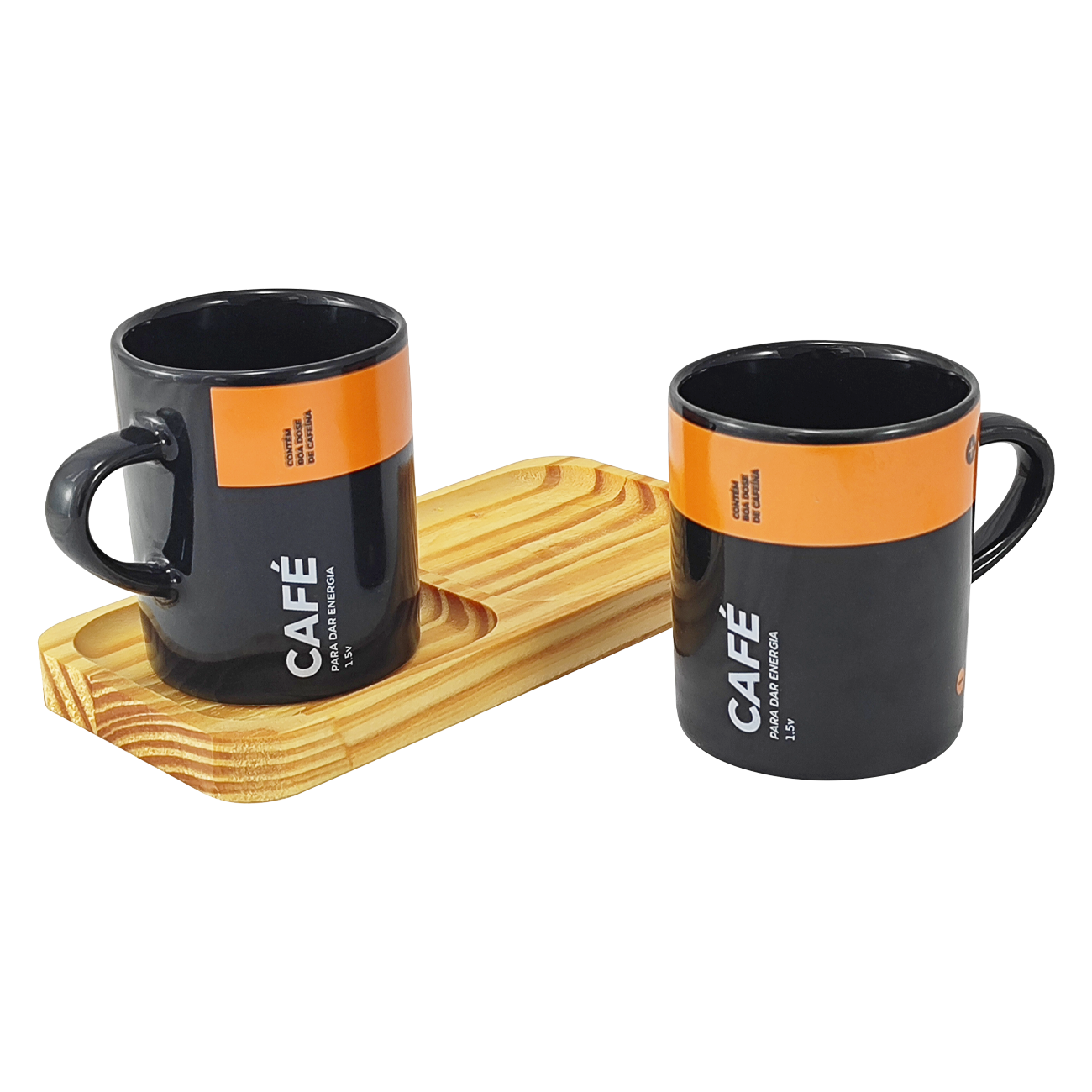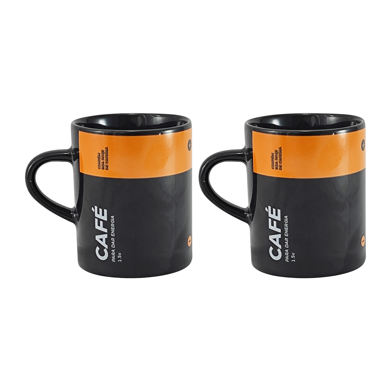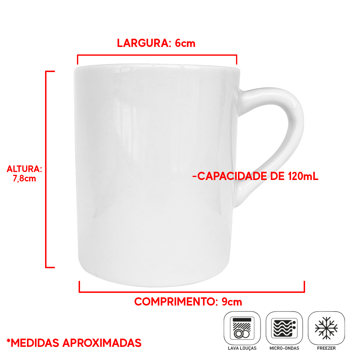 Voltar para a página inicial > Pilha > Jogo 10 Kit 2 Xícaras/Canecas de Porcelana Reta 120ml Suporte duplo de pinos Pilha Café Energia
