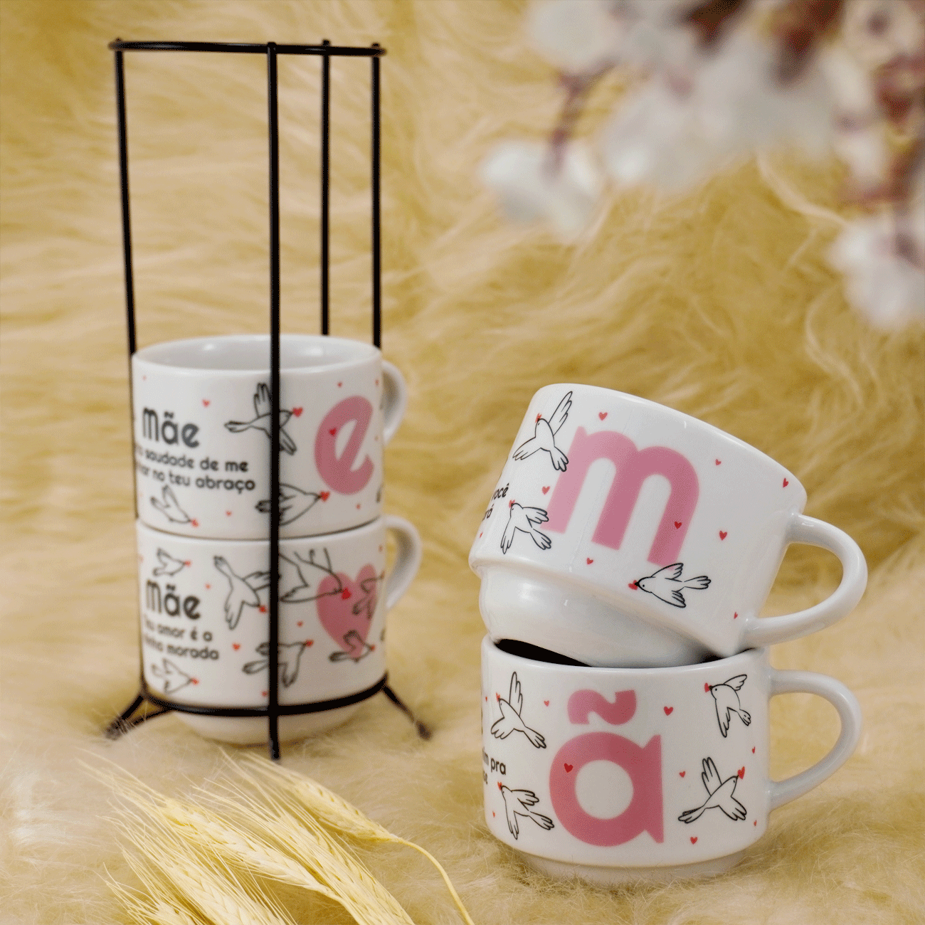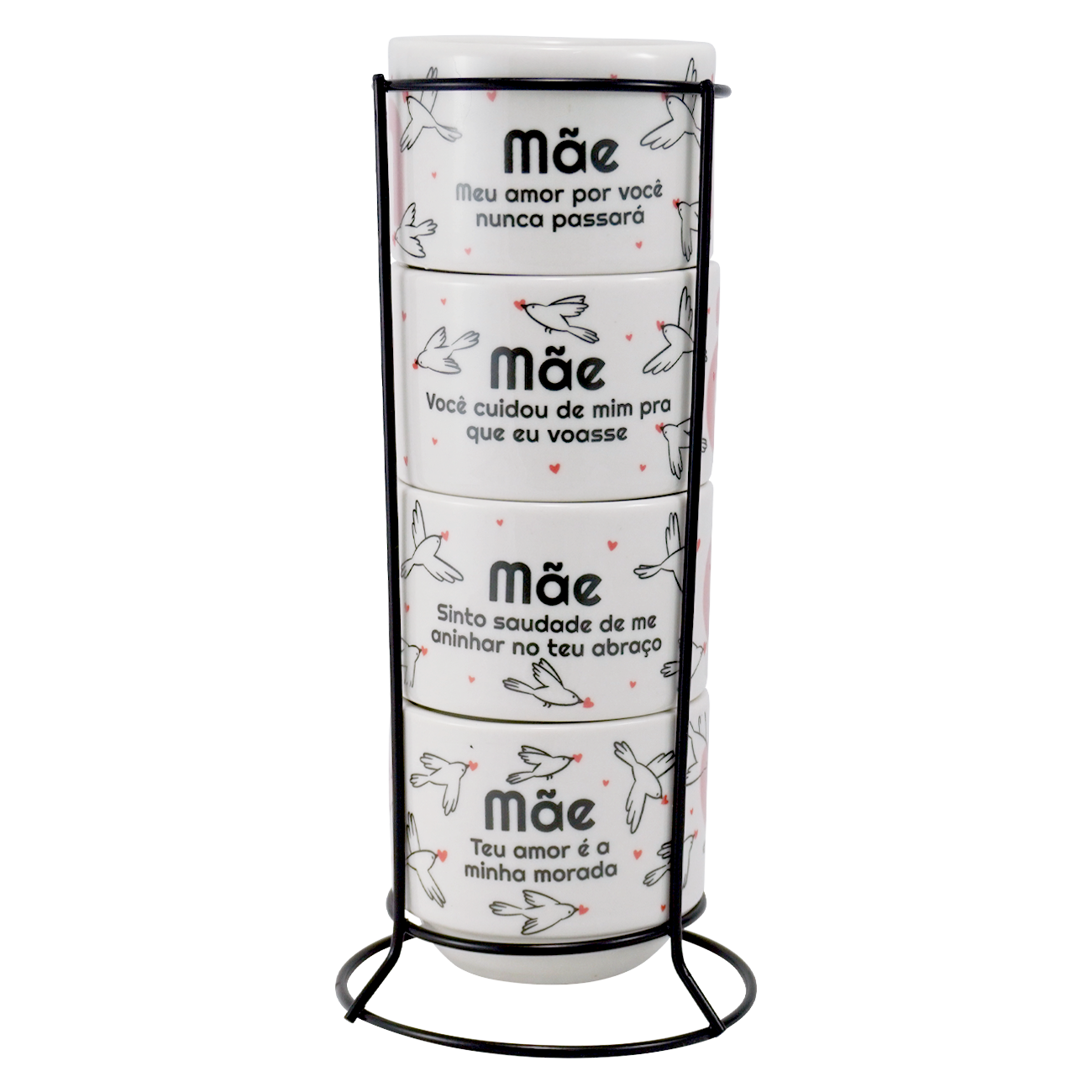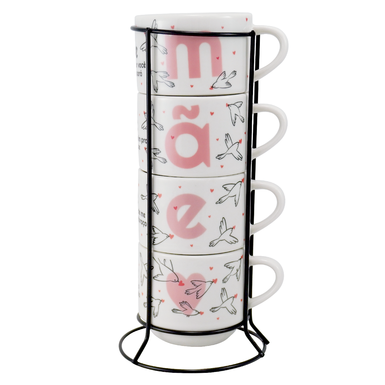 Voltar para a página inicial > Mãe > Jogo com 10 Kit 4 Xícaras empilhável em Porcelana Café Chá Com Suporte Mãe Pássaros cores Sortidas