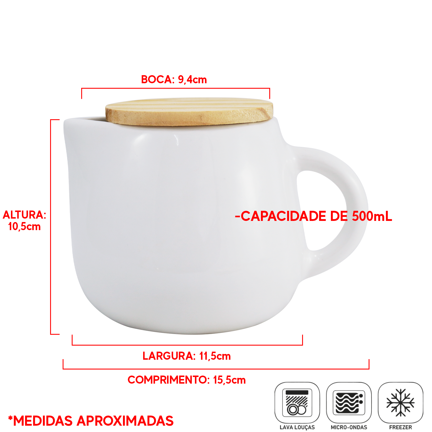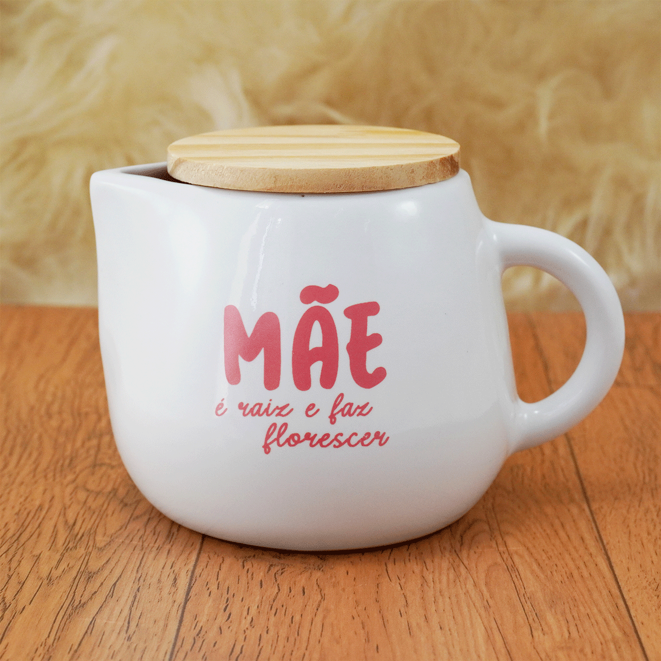Kit 5 Leiteiras tico 500ml em Porcelana com tampa Pinus decorada Mãe é Raiz Floral