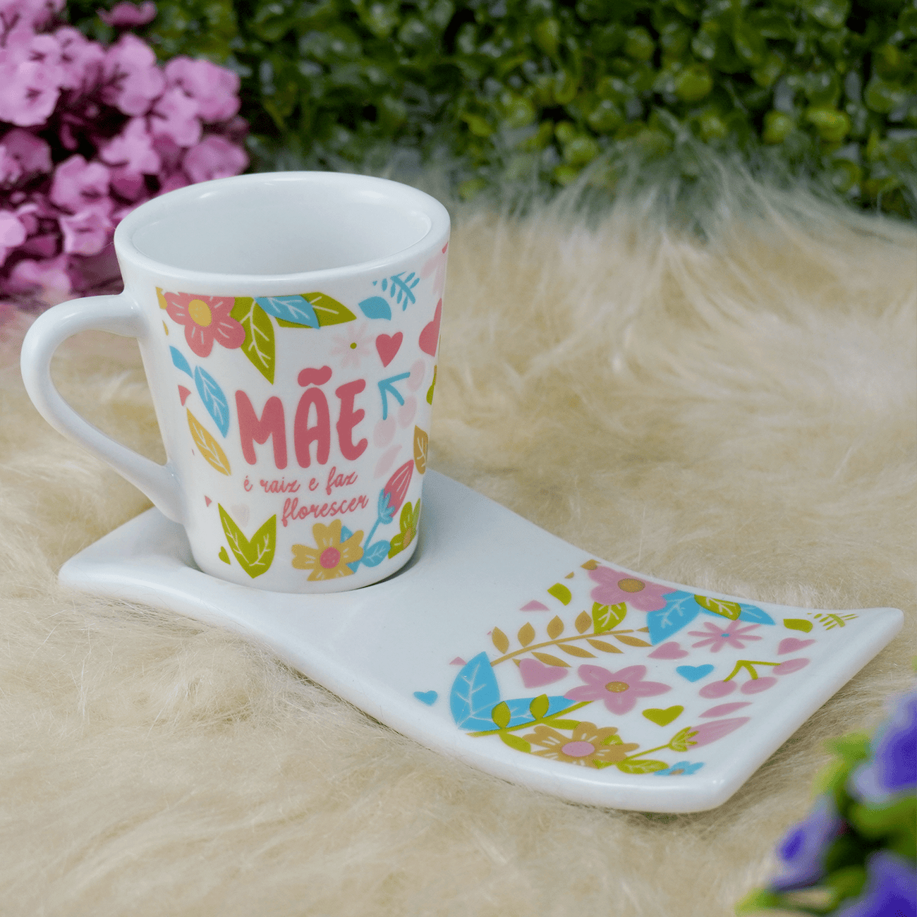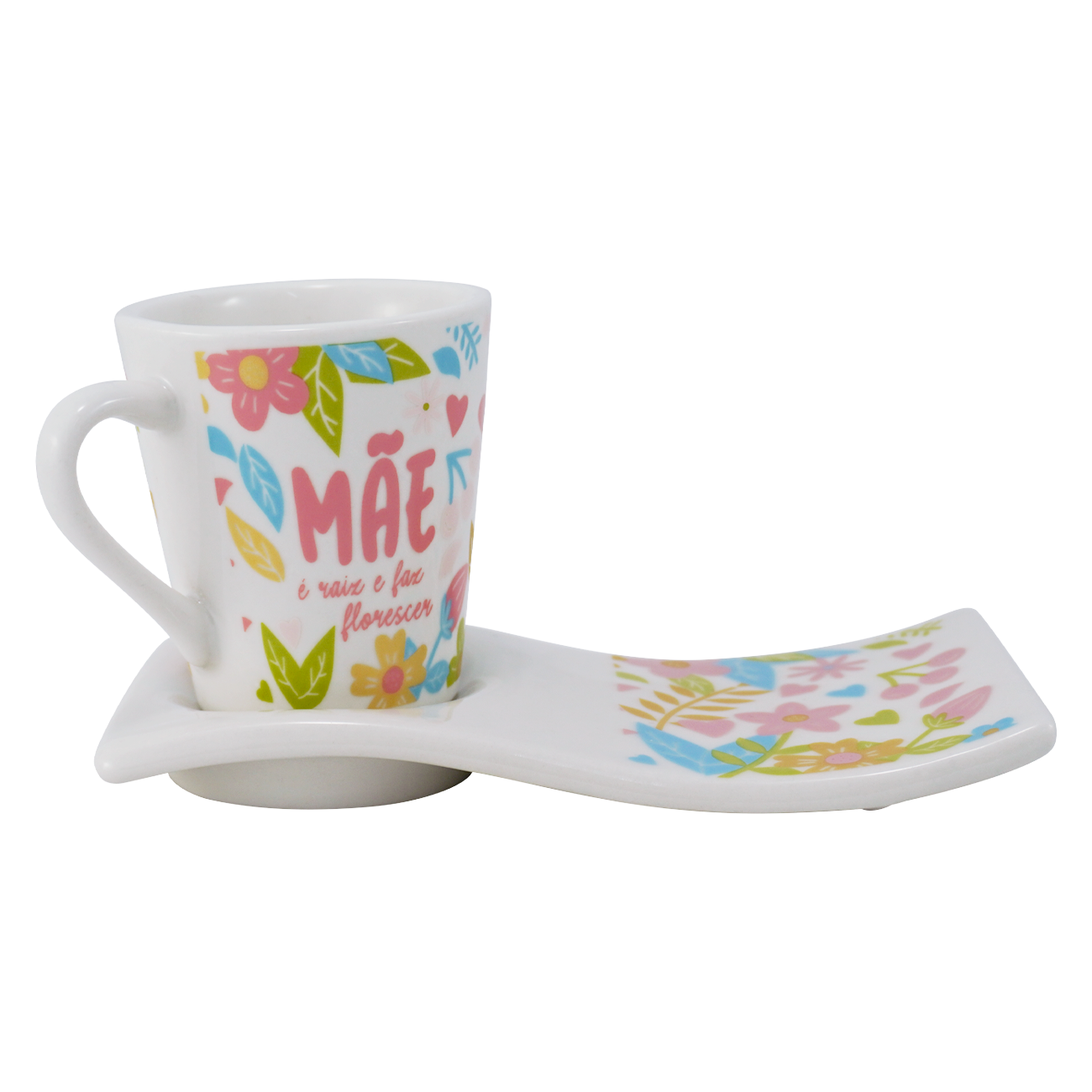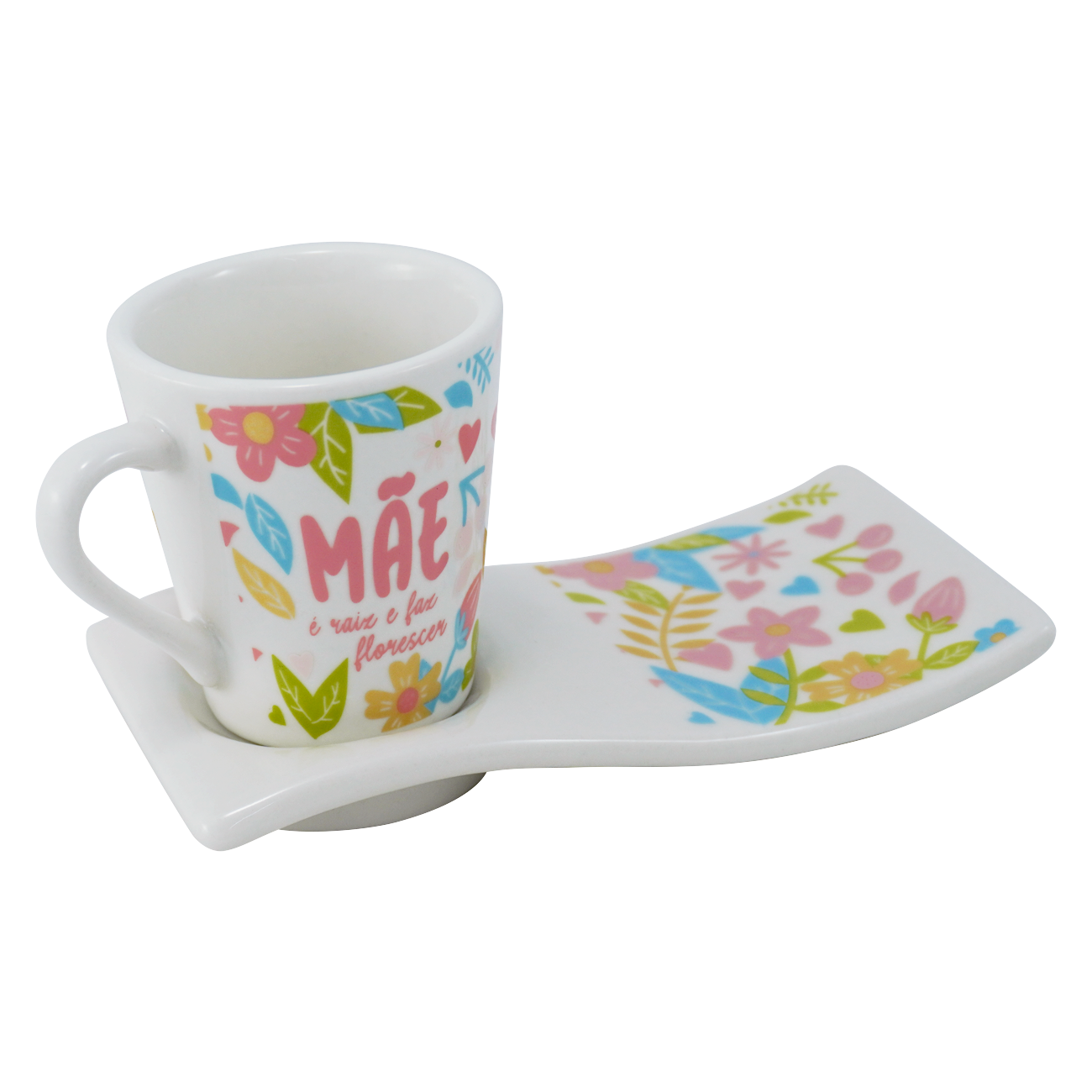 Kit 6 Xícara 120ml Café/Chá com Pires Ondulado em Porcelana Mãe Raiz Floral