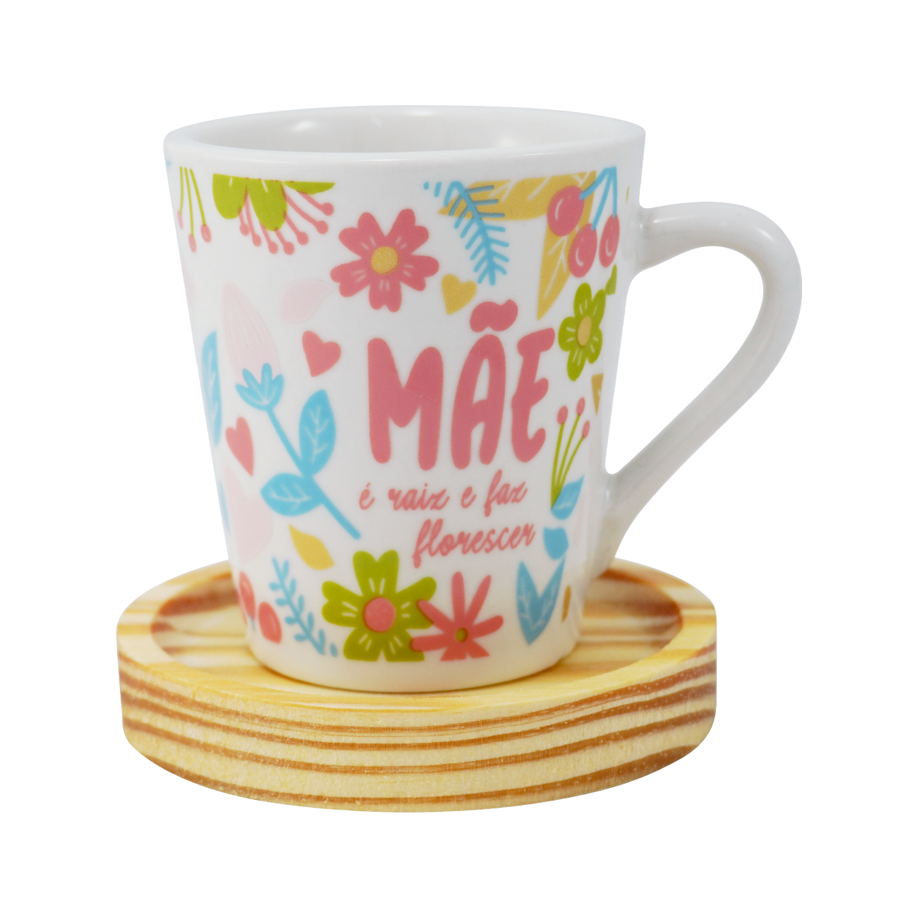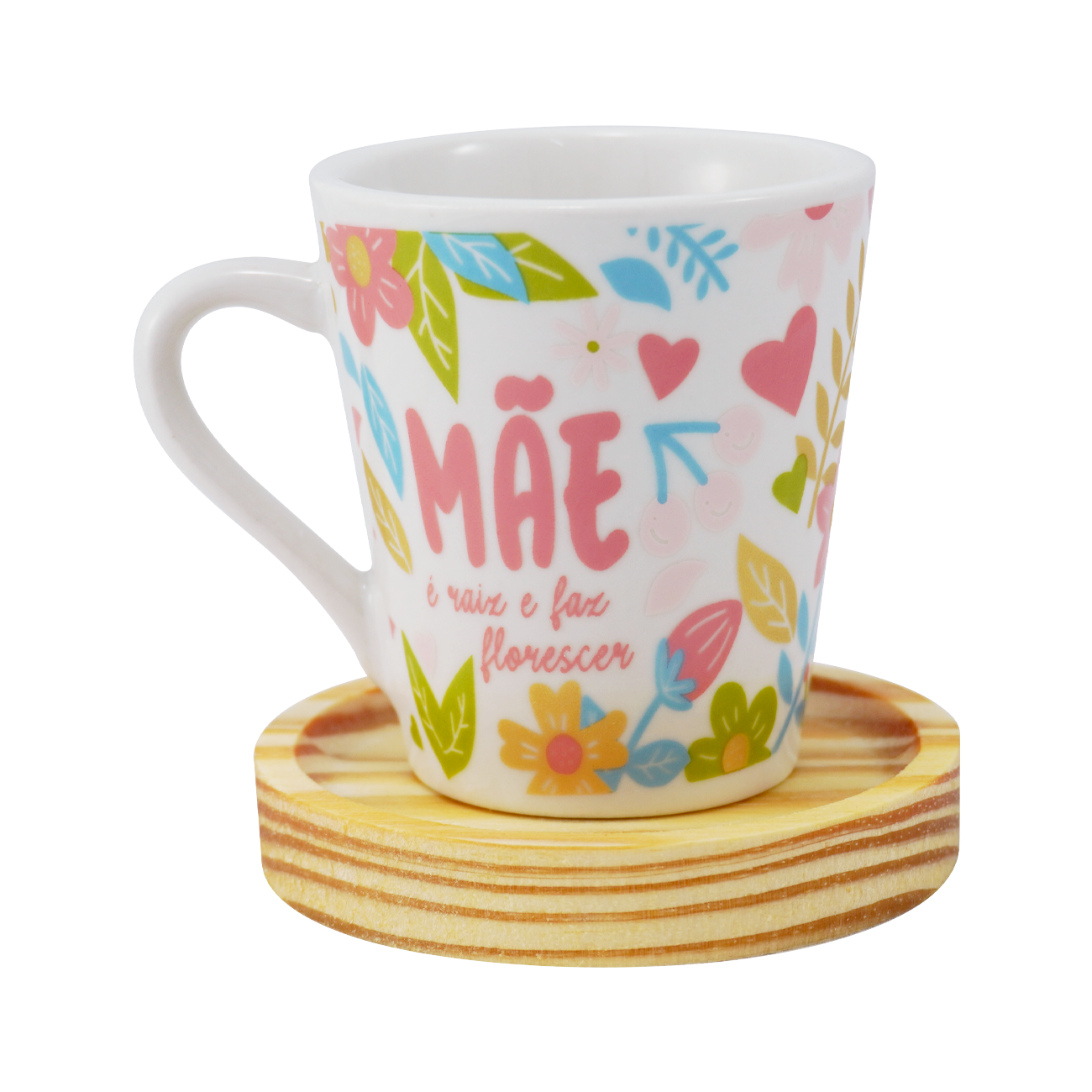 Voltar para a página inicial   >   Xícara café 120ml + Pires Pinus redondo   >   Kit 6 Canecas/ Xicaras Tulipa 120ml Café Porcelana Mãe é Raiz Floral Pires Pinus redondo