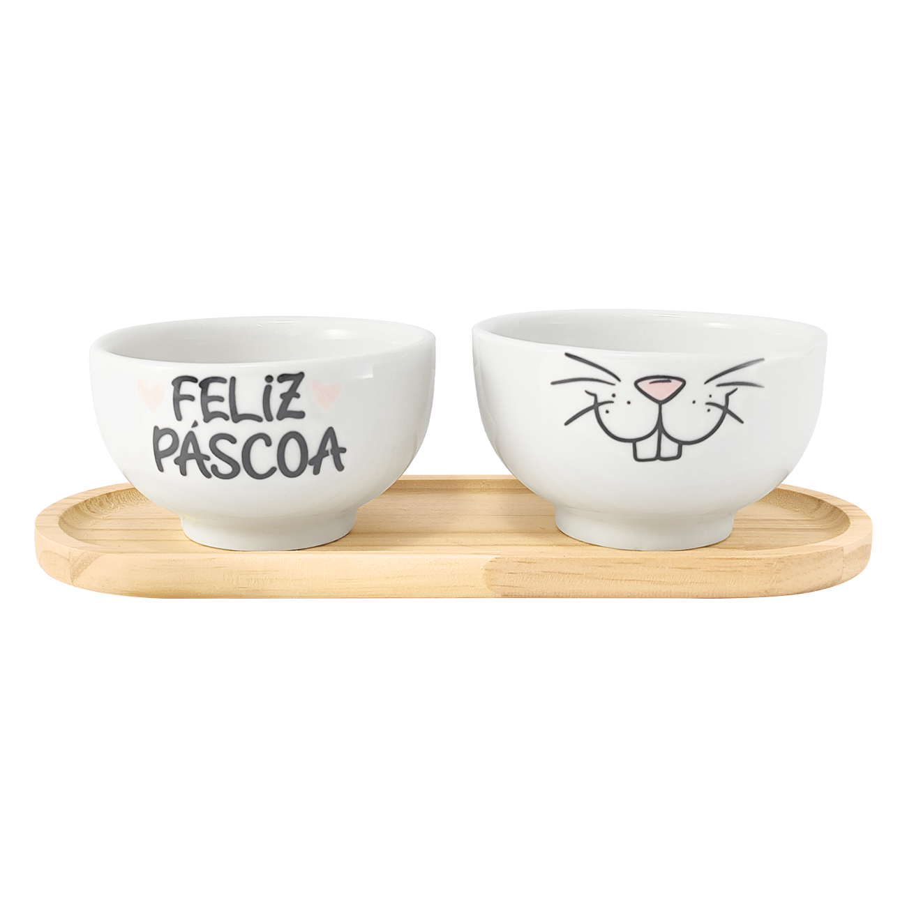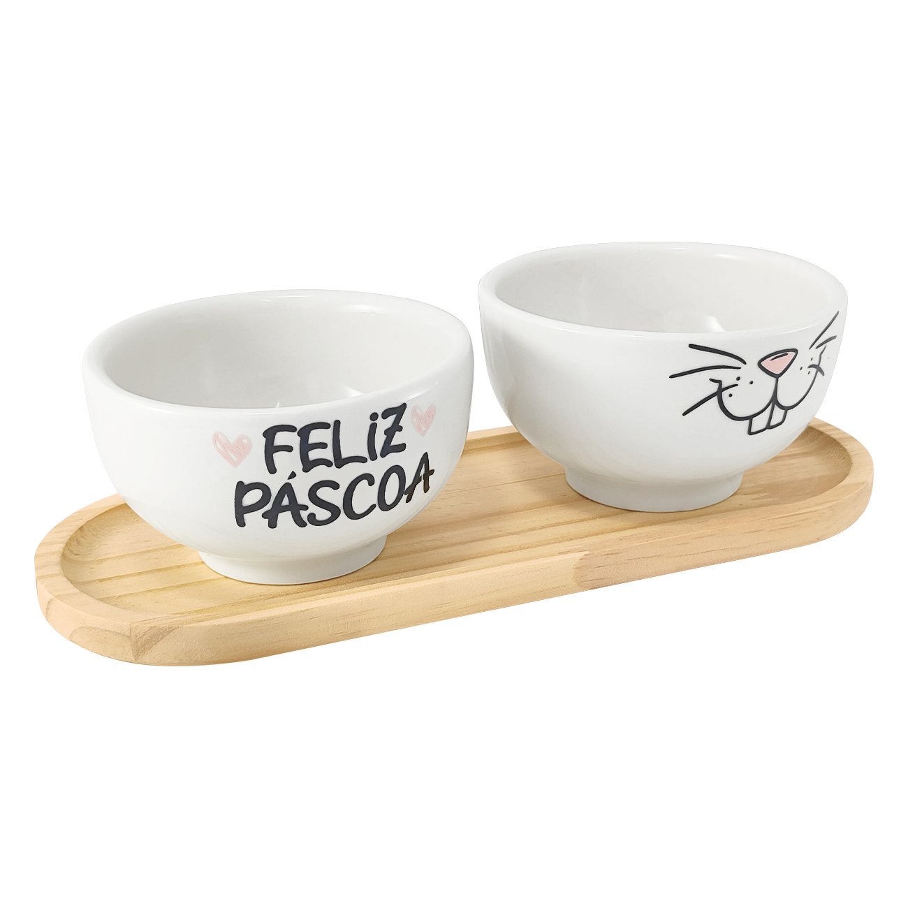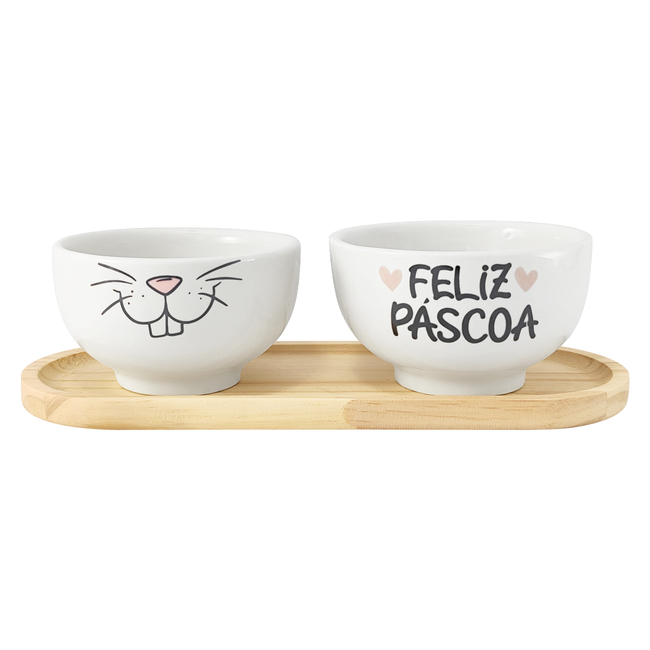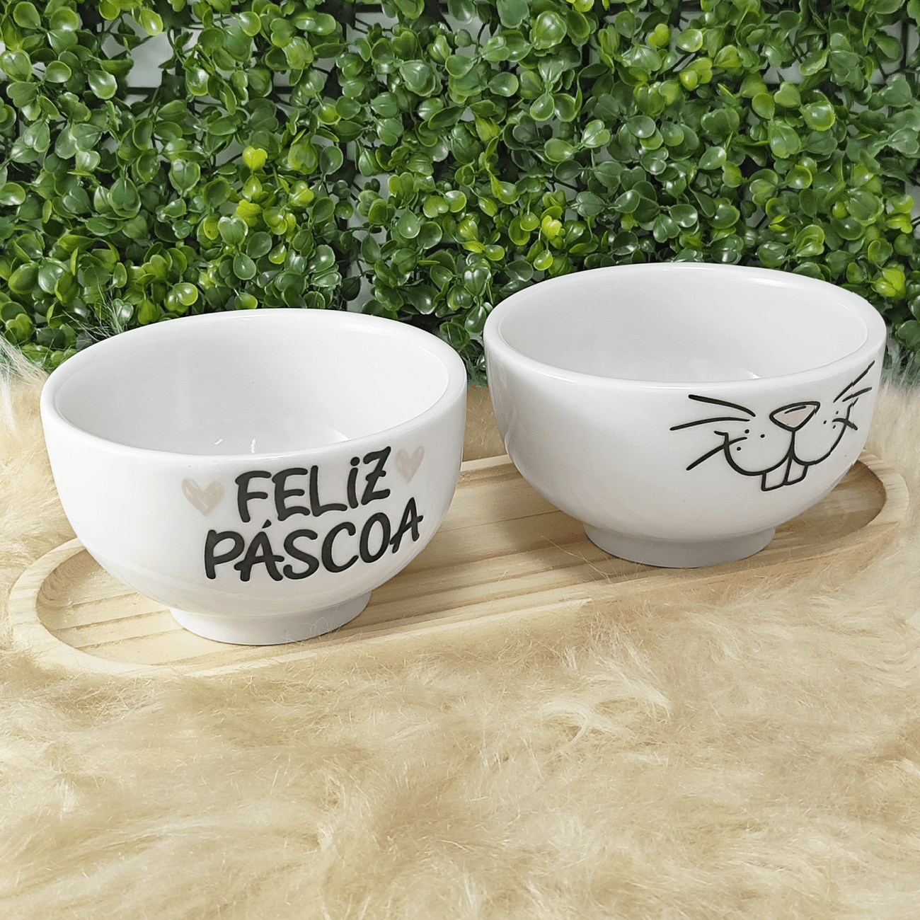 Kit Jogo 2 Bowl Tigelas 450ml Porcelana Cumbuca Sopa Açaí Decorada Páscoa Bandeja Pinos Oval