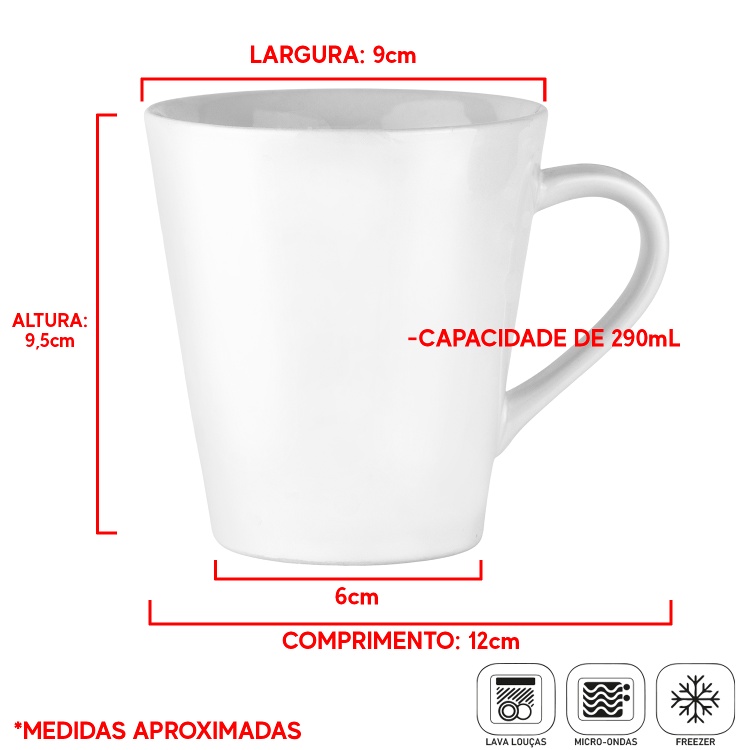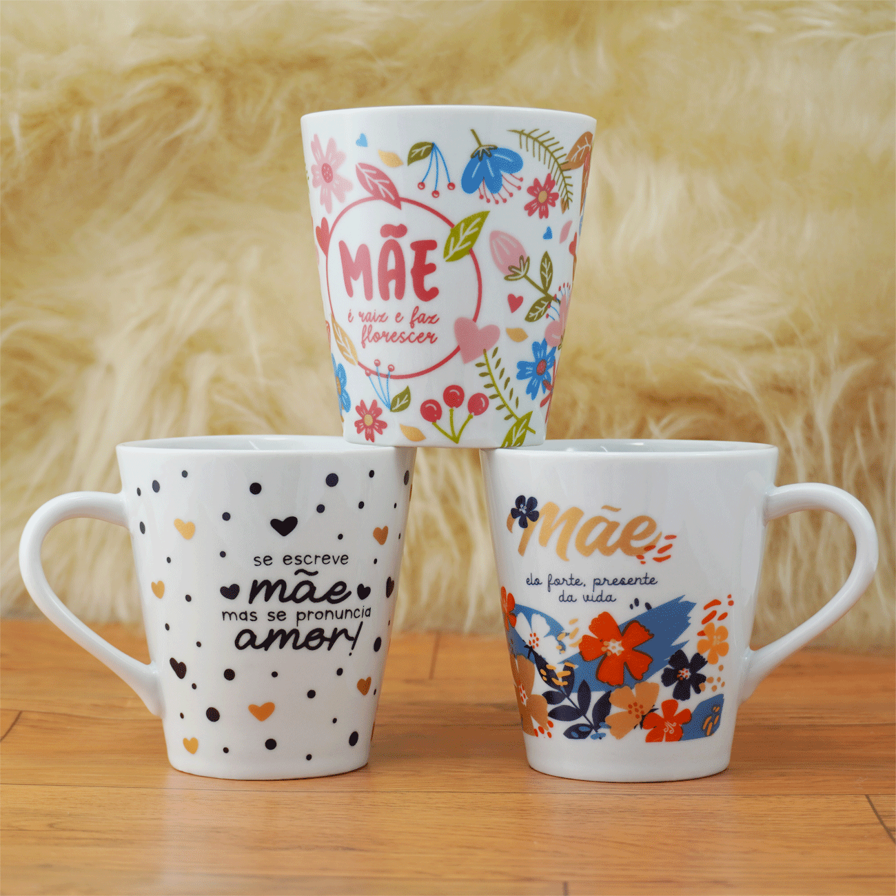 Kit 10 Canecas Cônicas Porcelana 290ml Branca decorada Mãe Sortidas