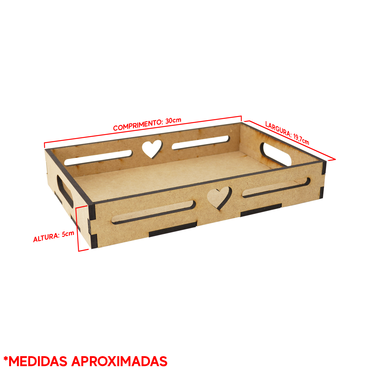 Bandeja Retangular Madeira Cantinho Café MDF 6mm Coração